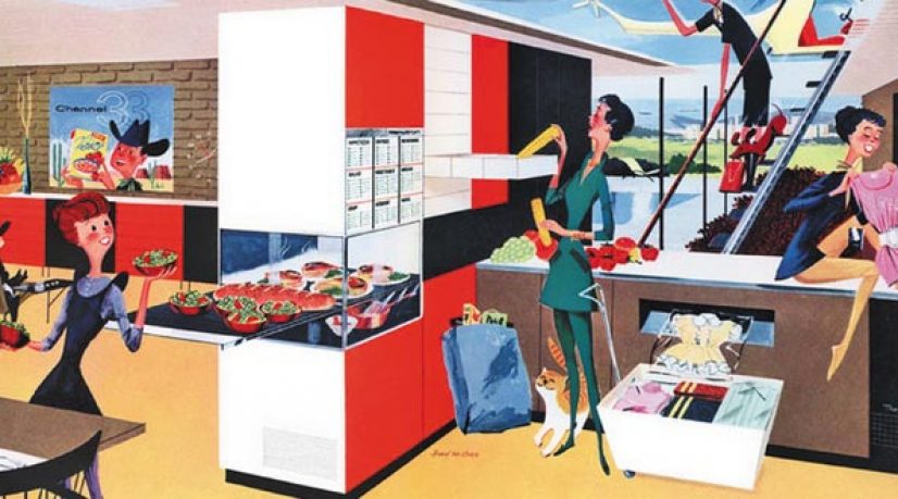 L’image a pu en 1962 inspirer la société de production Hannah-Barbera, pour leur bande dessinée ‘Les Jetsons’, qui campe une famille typique de 2062 prise en charge par des robots et des dispositifs sensibles. Mais nous ne savions pas à l’époque qu’autant de travail serait encore effectué par les humains dans le nouveau millénaire.